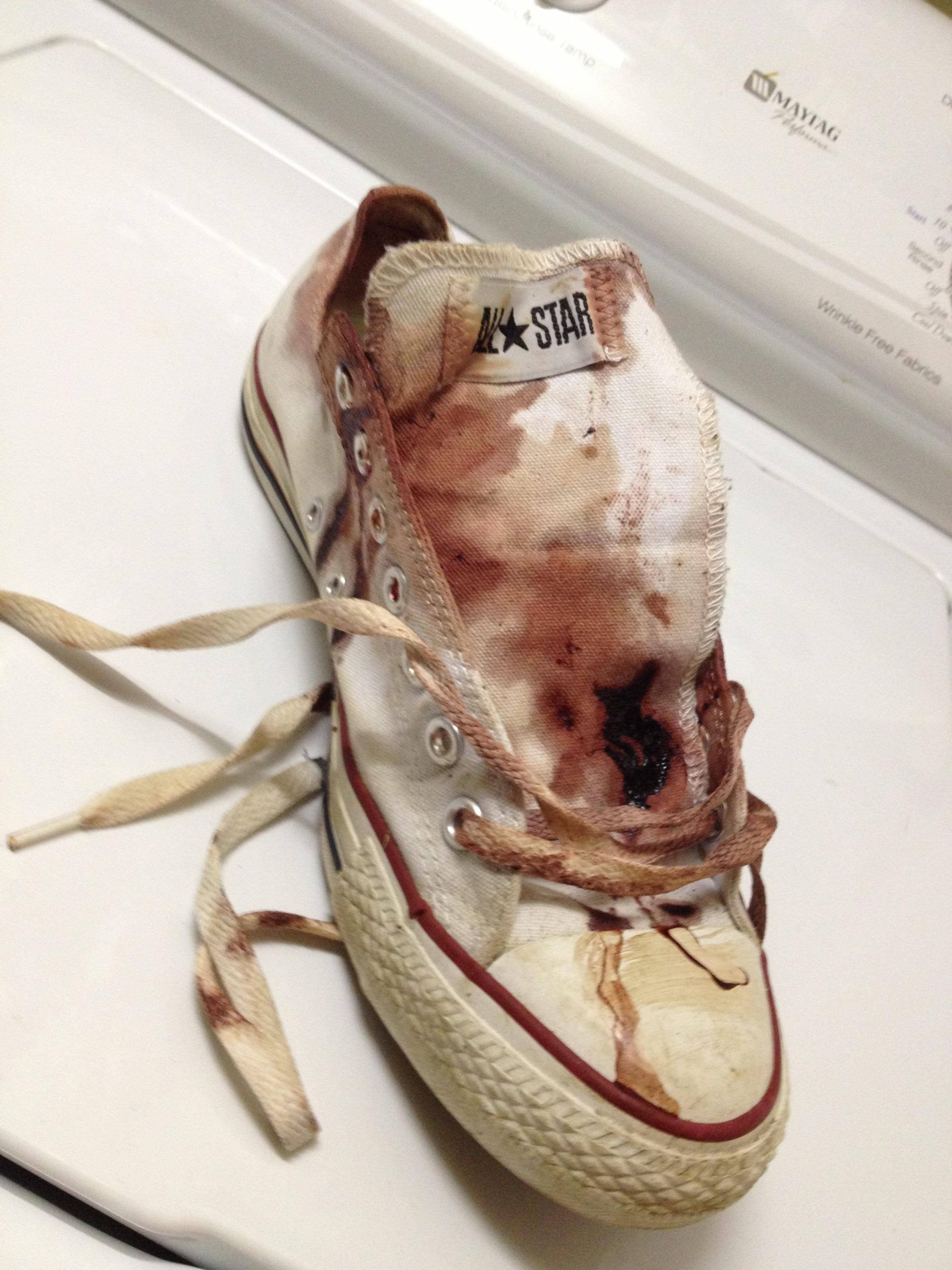 - Blood stains on shoes can be difficult to remove