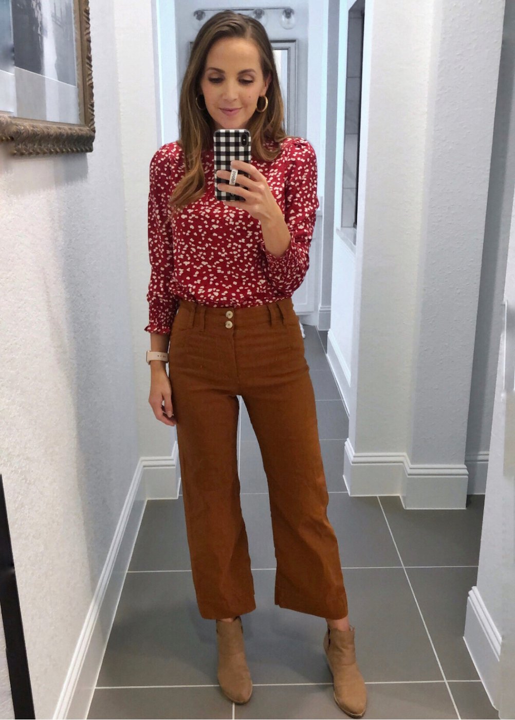 Now that we’ve established how great ankle pants are, let’s talk about what to wear them with. Since they are already a statement piece, you don’t want to go overboard with the rest of your outfit. A simple top will do the trick!